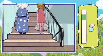 - Mini-Game 1: Click on the grandma's bag. The minigame starts, click the Space button with the right timing to make them go up the stairs.